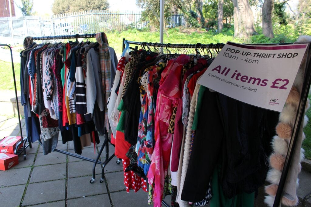 EKC Broadstairs College hosted a thrift shop pop-up. Clothes, shoes, and other items were generously donated by students and staff. This Thrift Shop approach means students and staff can buy lovely items at a low cost with all proceeds going to our on-campus Foodbank.
